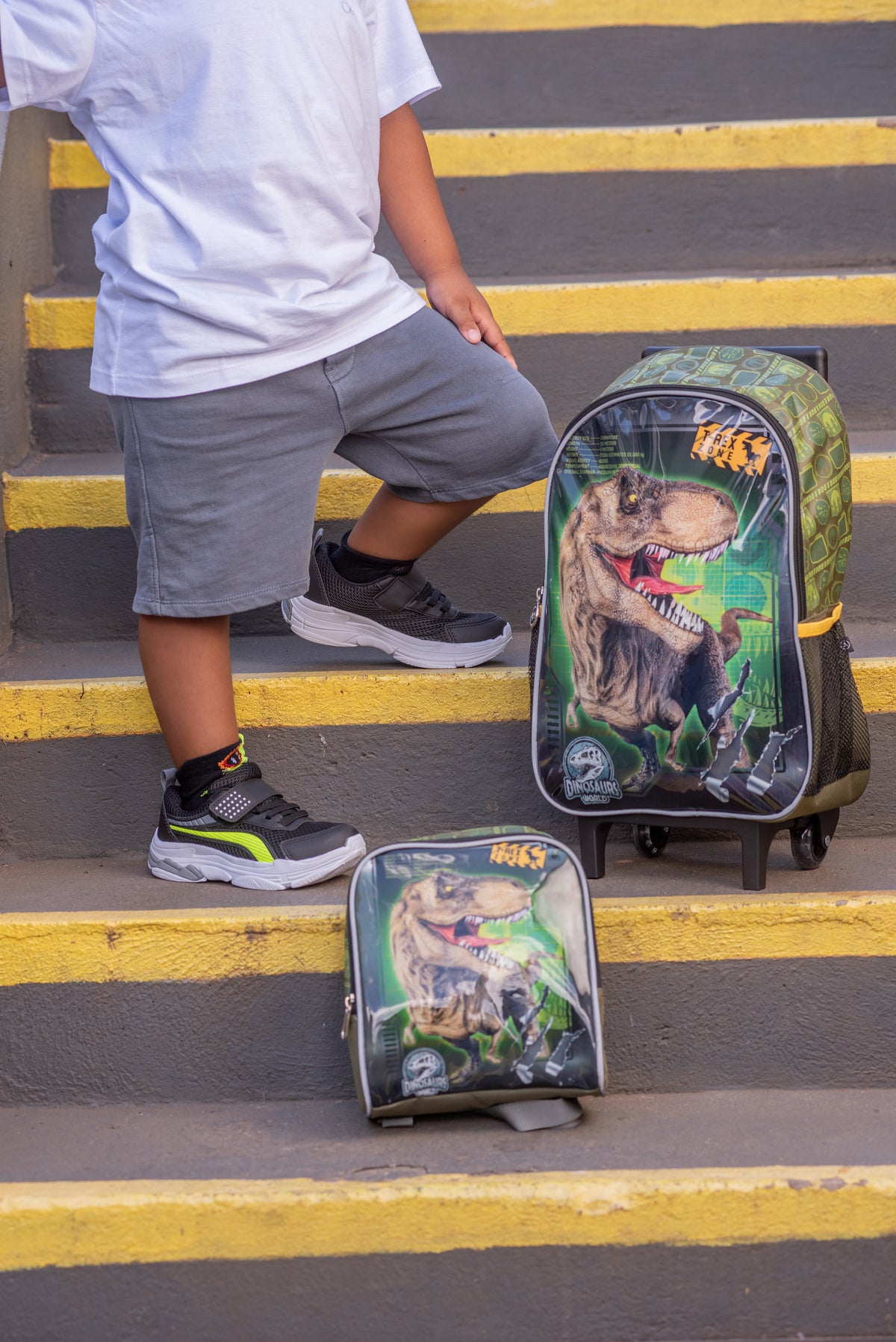 Kit Mochila Dinossauro Estojo Lancheira Térmica Menino