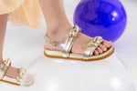 Sandália Birken Infantil Feminina Calce Fácil Detalhe em Amarração Dourado Metalizado