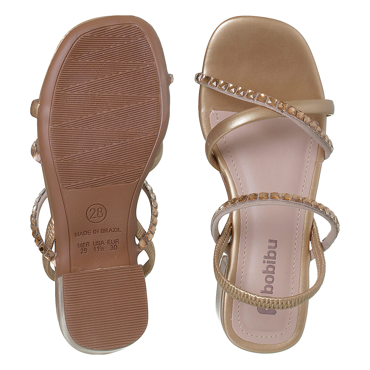 A Sandália Infantil Feminina Dourada com Strass e Salto é a escolha ideal para deixar as pequenas ainda mais estilosas e cheias de charme em qualquer ocasião. Com design moderno e delicado, possui tiras finas decoradas com pedrarias brilhantes, que adicionam um toque de sofisticação ao visual.