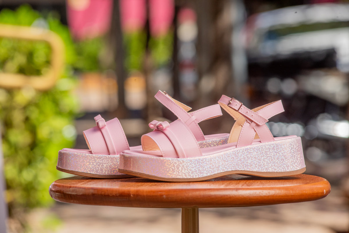 Sandália Infantil Feminina Plataforma Rosa Brilho