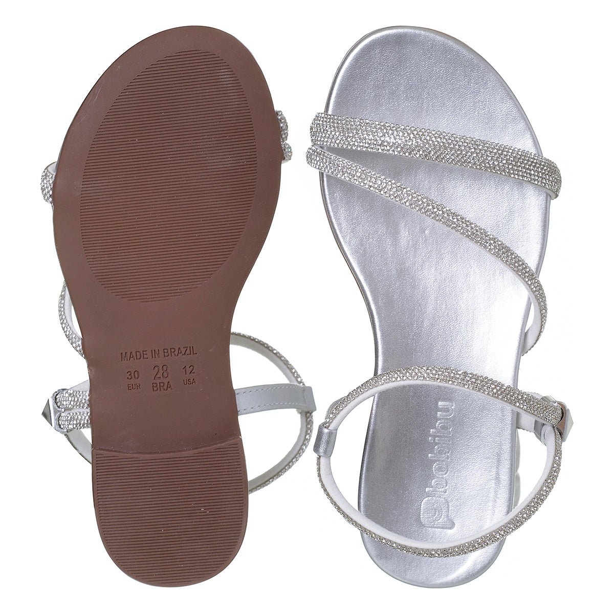 Sandália Infantil Feminina Prata Tiras Com Strass