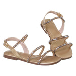 Sandália Infantil Feminina Tiras Com Strass Conforto Dourado