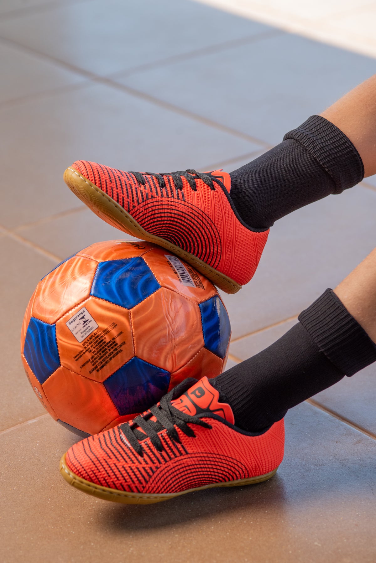 Chuteira Futsal Salão Infantil Bobibu Laranja e Preto – Desempenho e Estilo em um Único Calçado