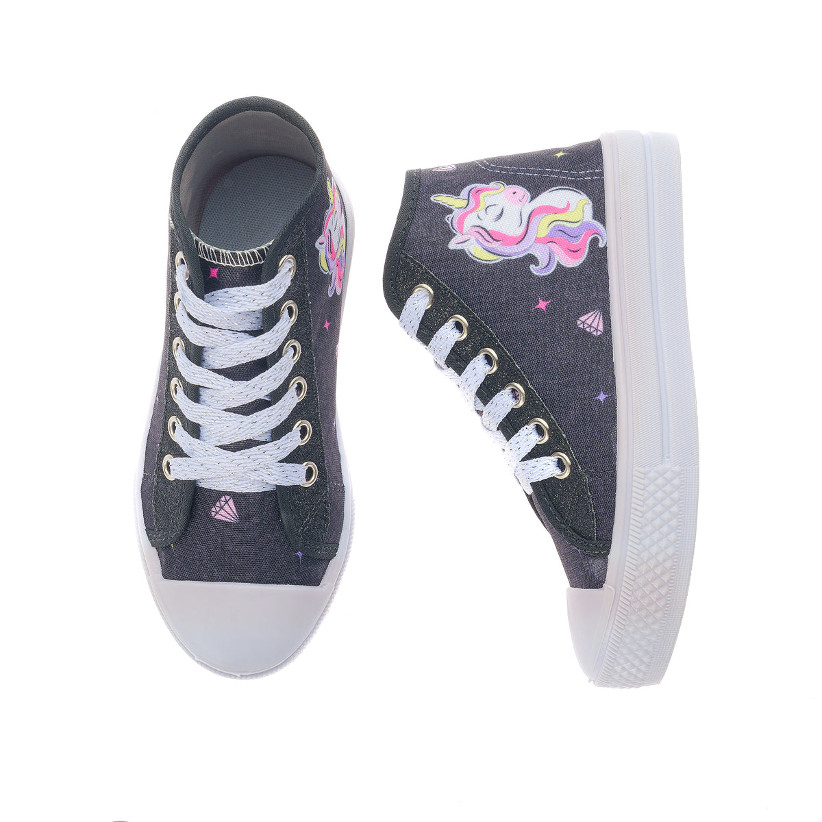 Tênis Infantil Feminino Estilo Street Cadarço Unicórnio Preto