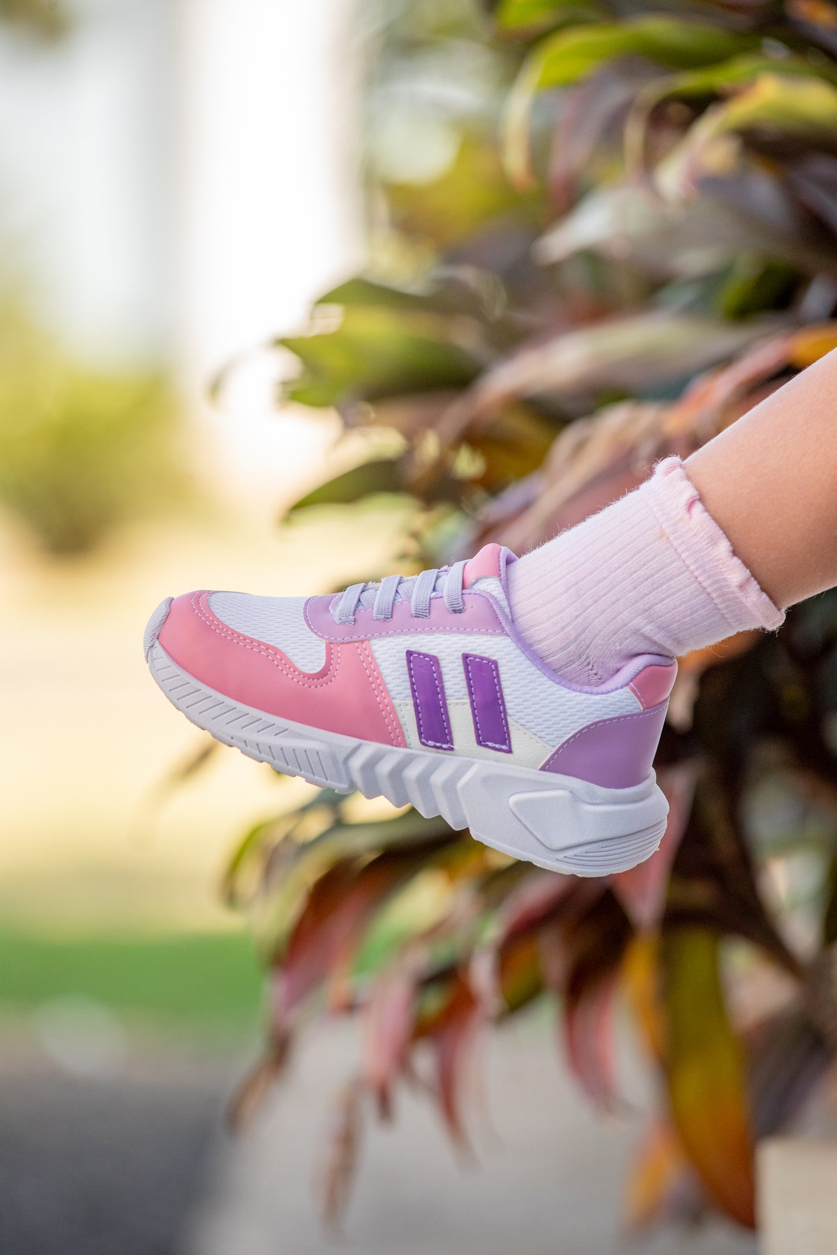 Cheio de estilo e conforto, o Tênis Infantil Feminino Casual Lilás com Rosa é perfeito para acompanhar as pequenas em todas as aventuras do dia a dia!