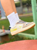 A palmilha macia e o solado leve e antiderrapante garantem conforto e segurança a cada passo, enquanto o cadarço colorido adiciona um toque divertido e moderno ao look.